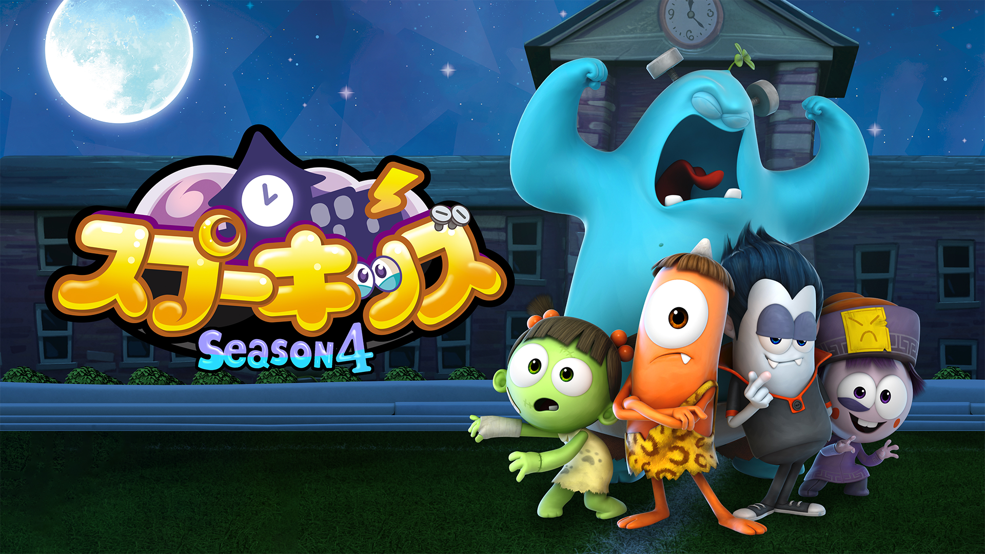 タイトルは「おばけのような」という意味のSpookyとkidsを合わせた言葉。ドラキュラやゾンビなど、ちょっぴり不気味だけどかわいいモンスターたちが3Dアニメで大活躍!